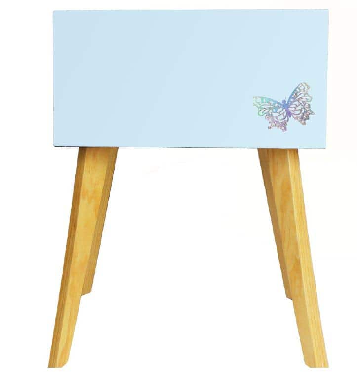 El buró infantil rosa con mariposa de Mobilius es una mesa de noche diseñada especialmente para crear espacios cálidos, dulces y funcionales en habitaciones infantiles. Su diseño delicado combina un suave color azul con un detalle decorativo de mariposa que aporta un toque mágico y encantador a la recámara de cualquier niño o niña