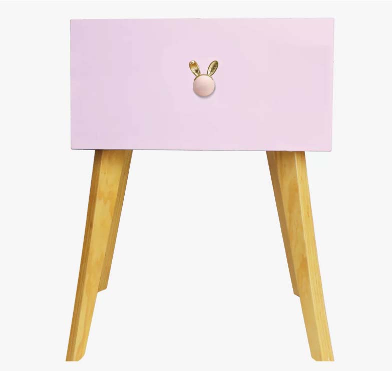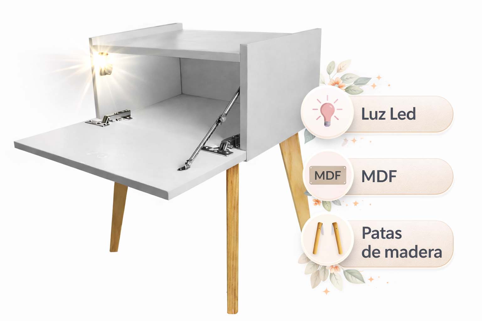 Este buró para niños cuenta con patas de madera en tono natural que brindan estabilidad y resistencia, además de un estilo moderno que combina fácilmente con diferentes tipos de decoración infantil. Gracias a su tamaño compacto de 40 cm de ancho, 20 cm de alto y 30 cm de profundidad, es perfecto para colocarse junto a la cama sin ocupar demasiado espacio.