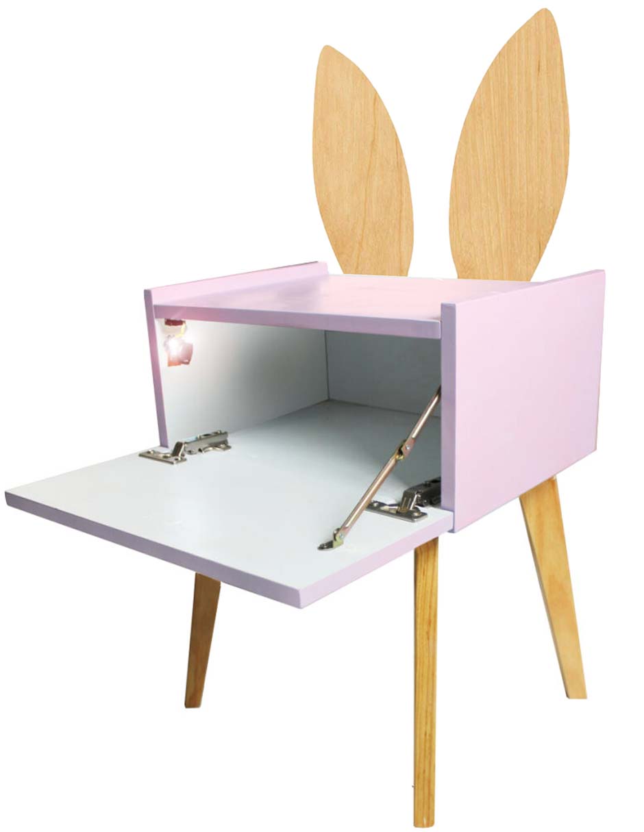 El buró infantil rosa con orejas de Mobilius es una mesa de noche diseñada especialmente para crear espacios cálidos, dulces y funcionales en habitaciones infantiles. Su diseño delicado combina un suave color rosa con un detalle decorativo de mariposa que aporta un toque mágico y encantador a la recámara de cualquier niña.